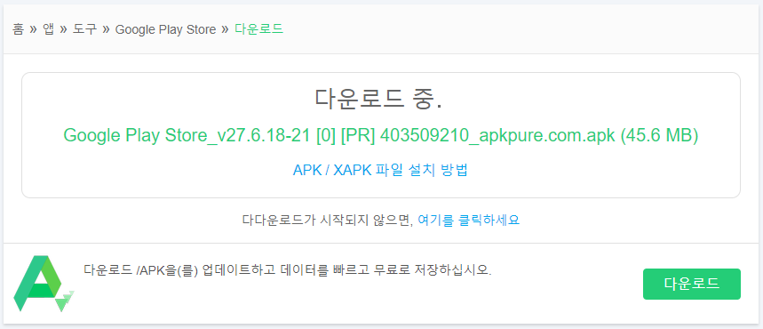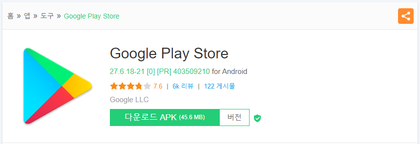 클릭을 하시면 구글 플레이 스토어 다운로드 apk 버튼이 보일 것입니다.