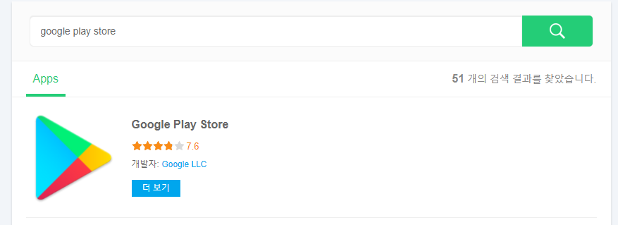 검색어를 입력 후 검색을 하면 구글 플레이 스토어가 아래쪽에 검색될 것입니다.