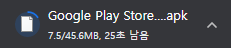 구글 플레이 스토어 설치 파일의 크기는 45.6MB로 약 30초 정도가 소요되었습니다.