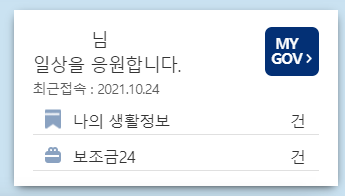 로그인을 하셨으면 위 화면처럼 MY GOV 버튼이 보이시게 될텐데 버튼을 클릭하시기 바랍니다.