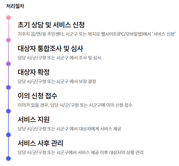 신청을 하면 대상자 통합 조사 및 심사가 이루어지고 대상자가 확정되면 서비스 지원을 받으실 수 있습니다.