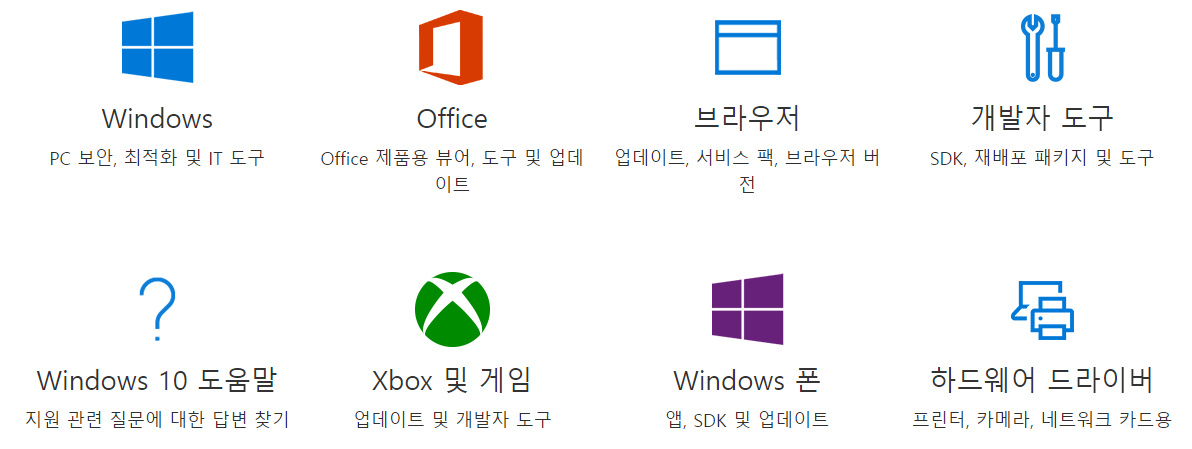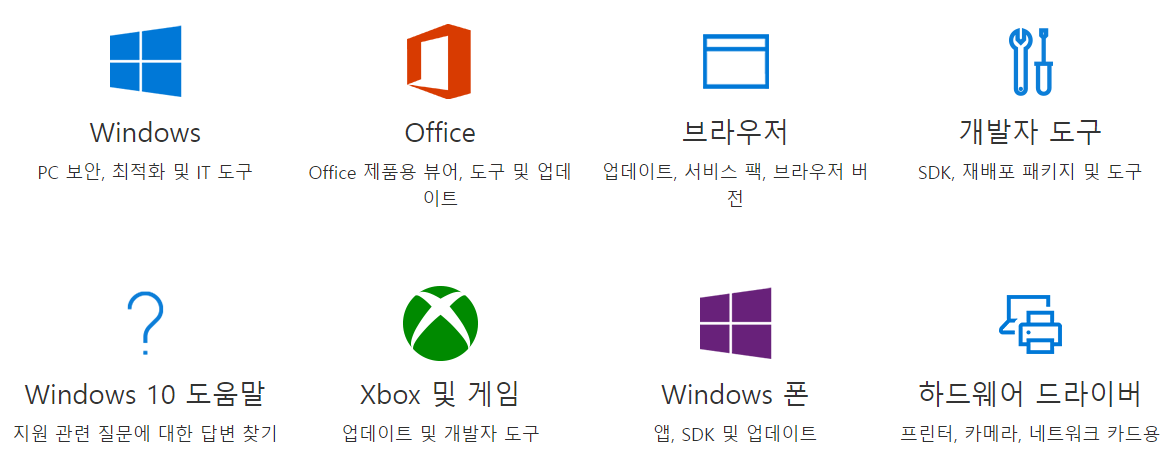 마이크로소프트 다운로드센터 홈페이지