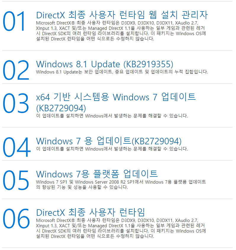제가 설명드린것들 외에도 마이크로소프트 다운로드센터 홈페이지에서는 여러가지를 다운로드 받으실 수 있으니 직접 한번 접속해보시기 바랍니다.