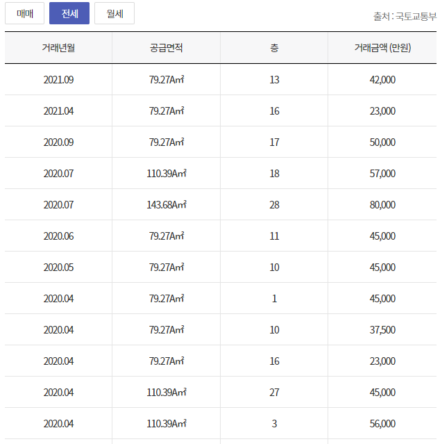다음은 전세 실거래가 시세입니다.